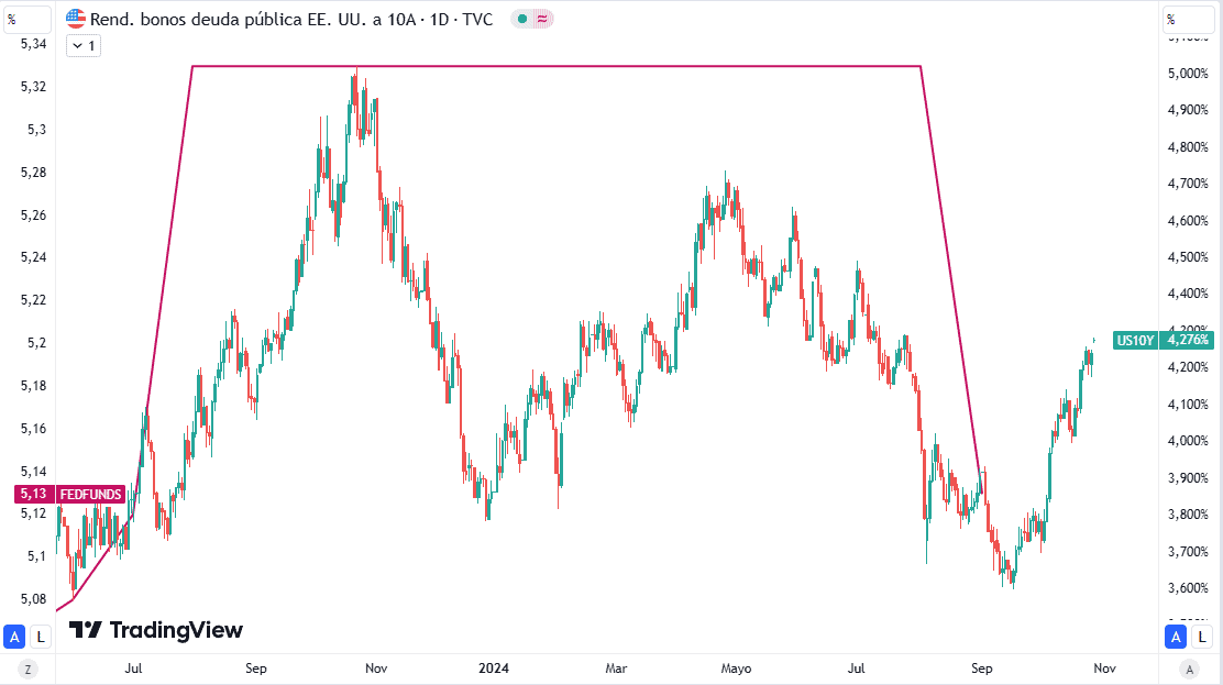 - El mercado espera una inflación mayor (frente a una victoria de Trump y su propuesta de aranceles universales)