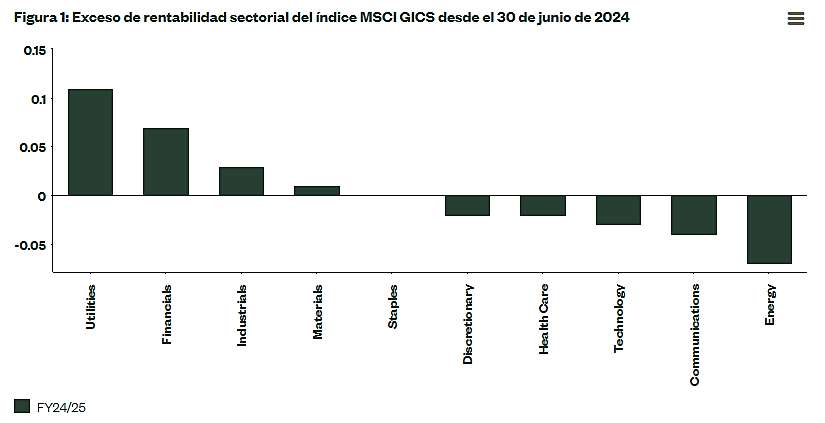 StateStreet: Desde julio hemos visto un cambio en el liderazgo del mercado, con los valores favoritos del mercado de inteligencia artificial (IA) teniendo un rendimiento inferior al esperado, mientras que los sectores financiero, de servicios públicos e industrial han obtenido un rendimiento superior.