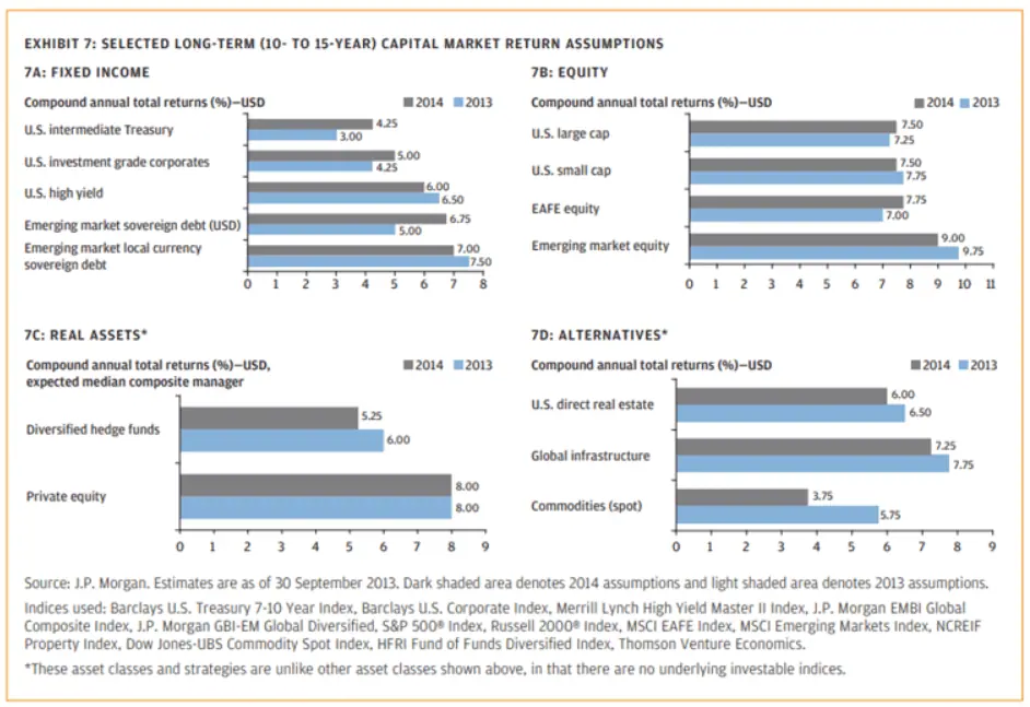 Newedgewealth: Las proyecciones a largo plazo se pueden equivocar. En 2014 JPM proyectó un rendimiento para los próximos 10-15 años del 7.5% para las acciones de los EEUU de gran capitalización. La realidad ha sido mucho más contundente, con retornos anualizados de 12,5% desde 2014 para el S&P 500 y de 19% para el Nasdaq 100. Por el contrario, los mercados emergentes han tenido un rendimiento muy inferior a las expectativas: el índice MSCI de mercados emergentes arrojó un rendimiento anualizado de apenas el 1% durante la última década.