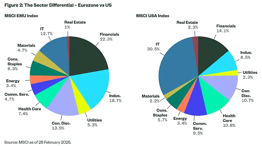 StateStreet: El rendimiento del mercado de valores estadounidense ha estado fuertemente impulsado por un pequeño grupo de empresas tecnológicas de alto crecimiento, lo que ha generado la percepción de que la inversión en crecimiento es la única estrategia ganadora. Sin embargo, el mercado de la eurozona es estructuralmente diferente, con una composición sectorial más equilibrada que ha permitido que las acciones de valor se mantengan.