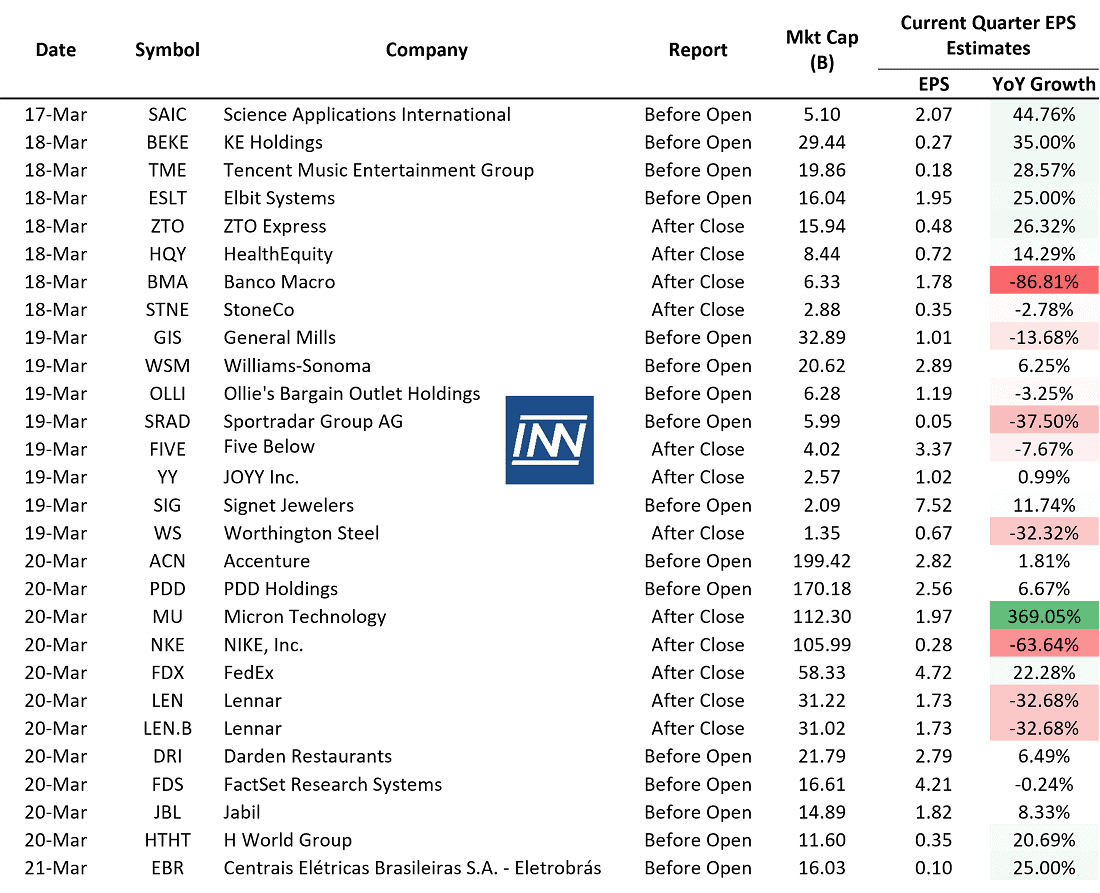 EPS estimados de empresas seleccionadas para la siguiente semana: