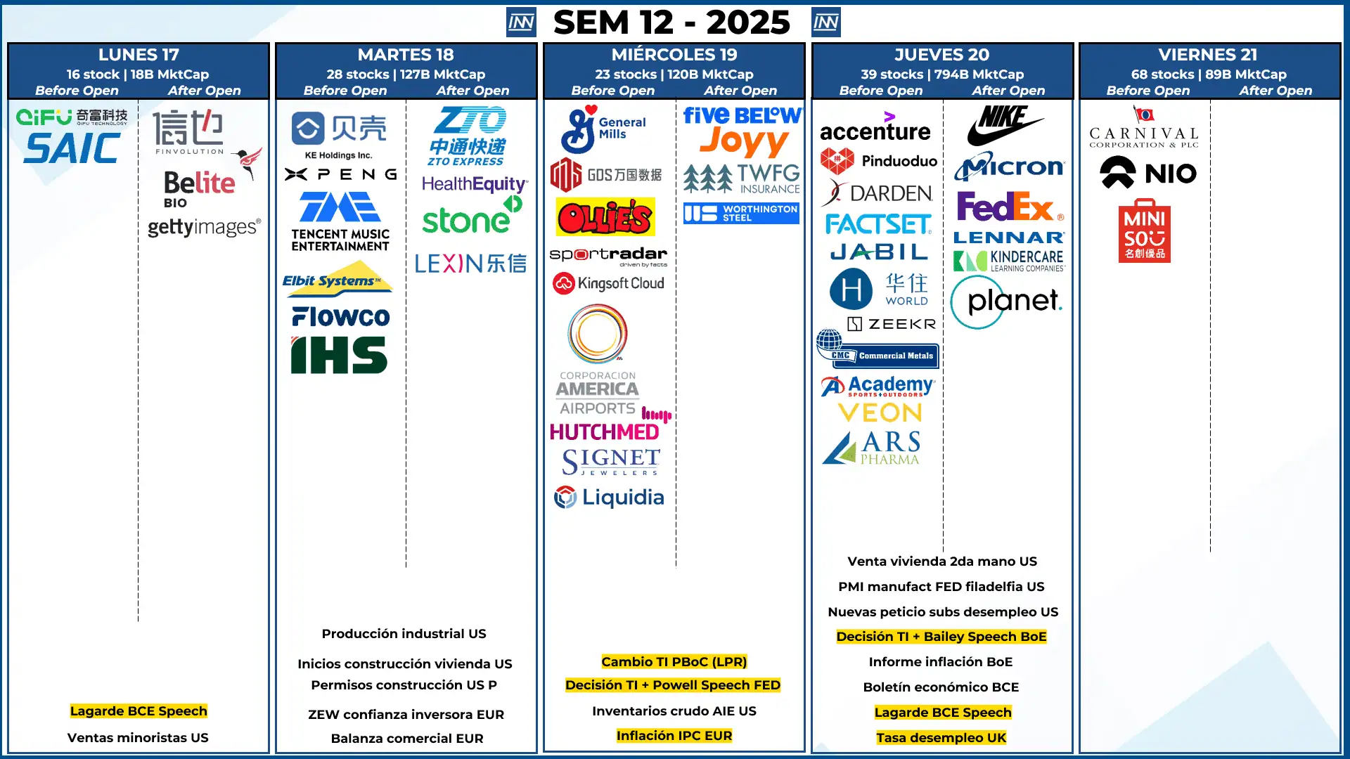 - Resultados Trimestrales: No tenemos compañías que muevan el mercado