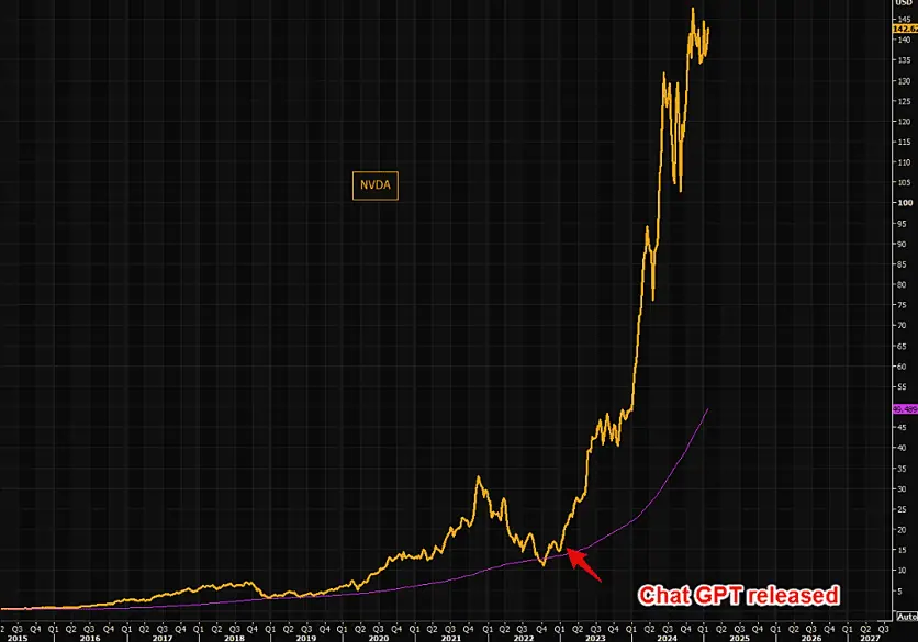 Recordemos que tan alejado está NVIDIA de la media de 200 periodos desde que se lanzó ChatGPT. (TheMarketEar)