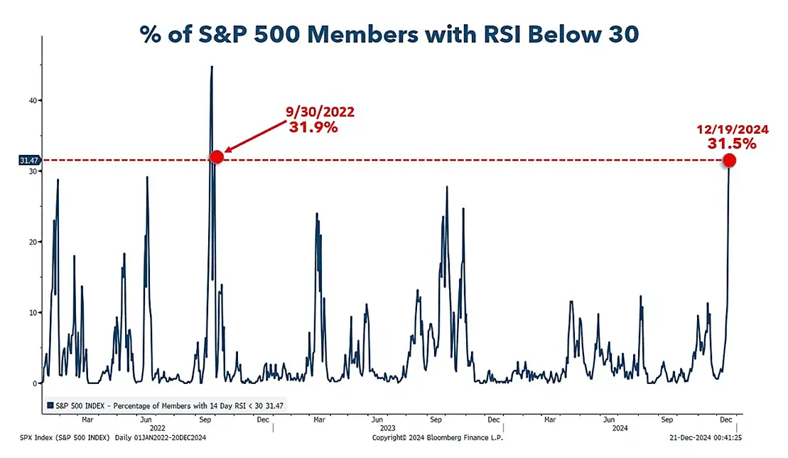 1) Tenemos el 31% de empresas del SP500 que están por debajo del RSI(14) por debajo de 30. Escenario similar al de septiembre de 2022, fecha donde el SP500 dio fin a la tendencia bajista que inició en el 2022.