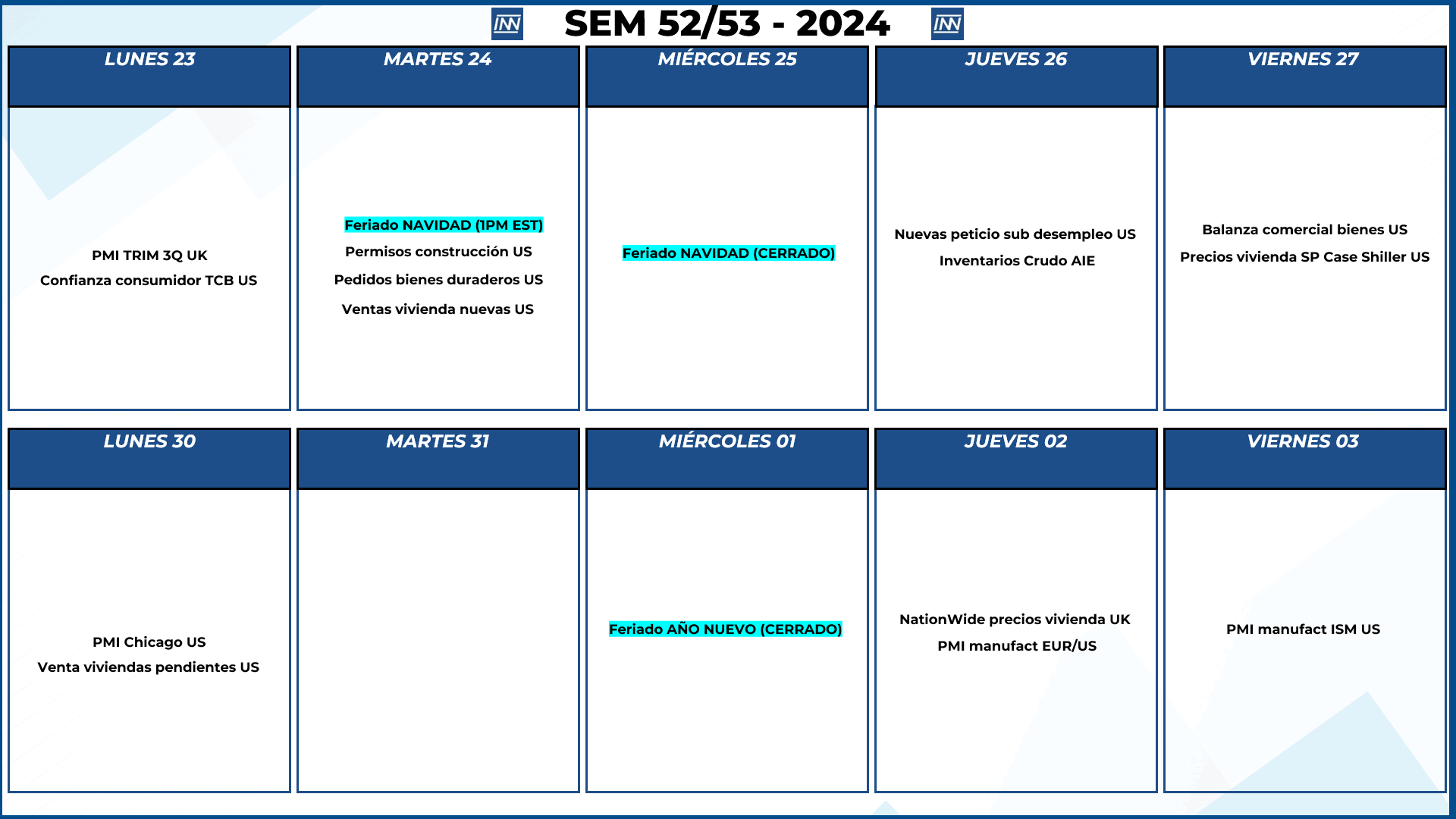 - Datos Macro: No tenemos datos macro importantes hasta fin de año, pero ojo con los PMIs