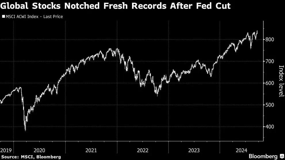 Bloomberg: Las acciones mundiales alcanzaron nuevos récords tras el recorte de la Fed