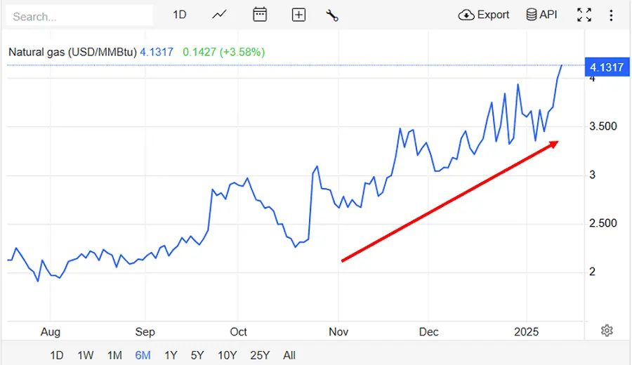 Precios del gas natural y petróleo en aumento